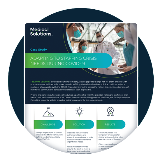 Explore real-world results from Medical Solutions’ workforce strategies. Learn how facilities attract top talent, reduce burnout and turnover, and consistently deliver safe, affordable, high-quality patient care.